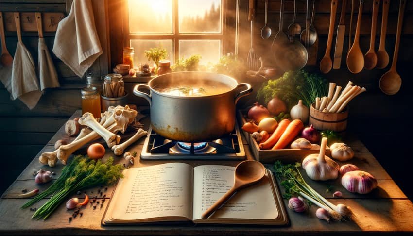 Lo hermoso del caldo de huesos es su versatilidad. ¿Por qué no añadir una pizca de cúrcuma para un efecto antiinflamatorio adicional, o quizás unas hojas de laurel y ajo para profundizar su sabor? La receta base del caldo de huesos es solo el comienzo. Tu intuición y preferencias personales pueden transformarlo en tu elixir único.